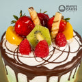 Inside: Three layers of our delicious Chocolate, perfectly moist cake and two layers of our brand new Tiramisu filling.