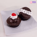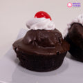 This is an individual chocolate cupcake, a small, round cake baked in a cup-shaped mold. It's made with a chocolate cake batter and is often topped with frosting or other decorations.