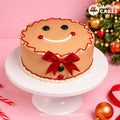 A festive whipped cream cake decorated with a charming gingerbread face, smooth creamy frosting, and cheerful holiday details—perfect for spreading Christmas joy