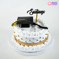 This cheerful and celebratory cake is perfect for a graduation party. Our Gold Dots & Ribbon Graduation Cake features layers of moist cake covered in a light blue buttercream frosting. The cake is adorned with a playful pattern of golden dots and a festive gold ribbon cascading down the side. The cake may also feature graduation-themed decorations, such as a graduation cap or diploma. This cake is sure to bring a smile to the graduate's face.